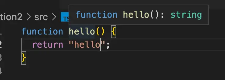 다음과 같이 함수를 만든 다음 마우스 커서를 함수 이름에 올려보면 추론된 타입을 확인할 수 있습니다.