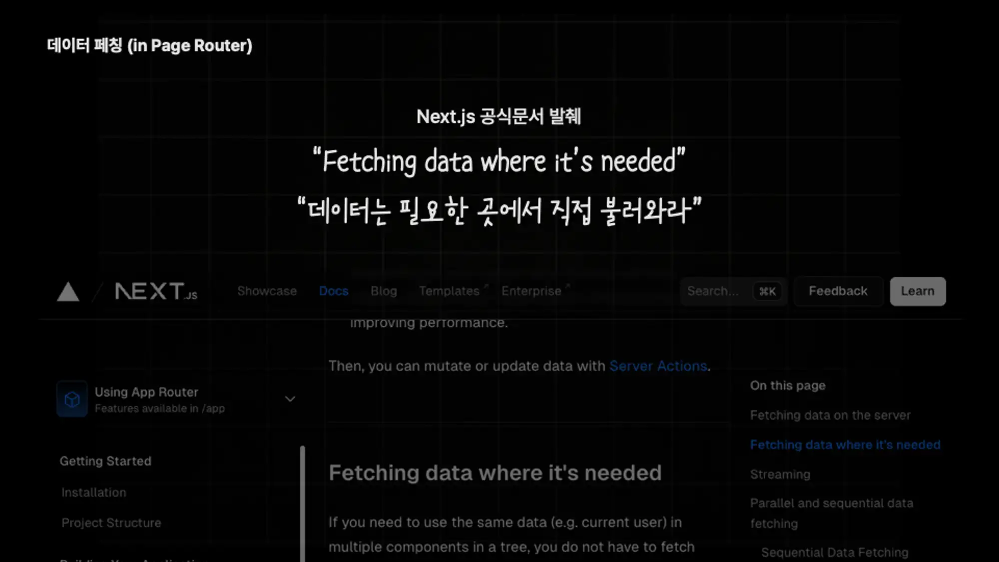 서버 컴포넌트를 활용한 데이터 페칭에 대해 살펴봅니다.