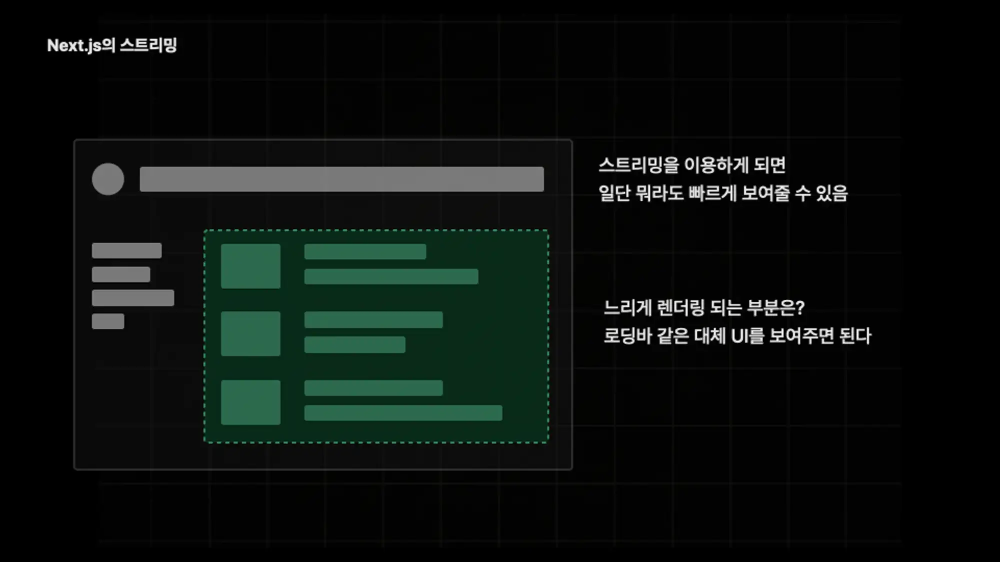 페이지에서 빠르게 준비되는 부분부터 바로 렌더링 하도록 도와주는 스트리밍에 대해 살펴봅니다.