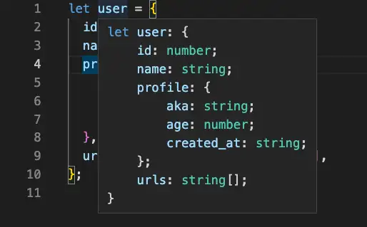 편집기(VsCode)에서 변수에 마우스 커서를 올리면 변수의 타입이 어떻게 추론 되었는지 확인할 수 있습니다.