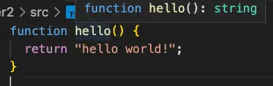 함수의 반환값 또한 자동으로 추론됩니다. 예를 들어 다음과 같이 string 타입 값을 반환하는 함수가 있다면 이 함수의 반환값은 string 타입으로 자동 추론됩니다.