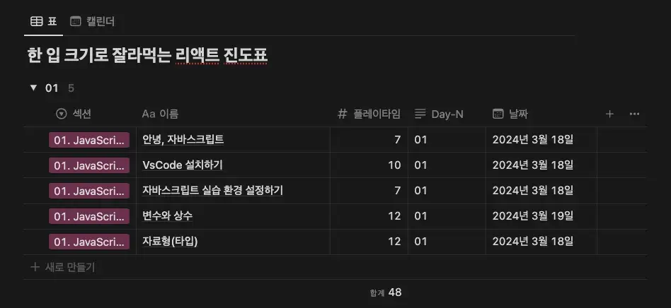 진도표에 따라 매일 정해진 시간(30분 ~ 1시간) 만큼의 강의를 수강하고