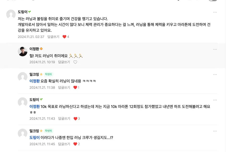 또 한 우수 회원분께서 개발 말고 다른 취미가 있냐는 게시글을 작성해주셨는데요