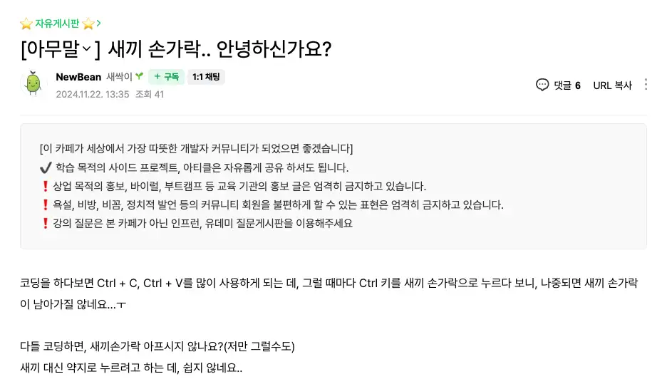 마지막으로 가장 공감되었던 글은 바로 새끼손가락 괜찮냐는 … 글이었습니다.