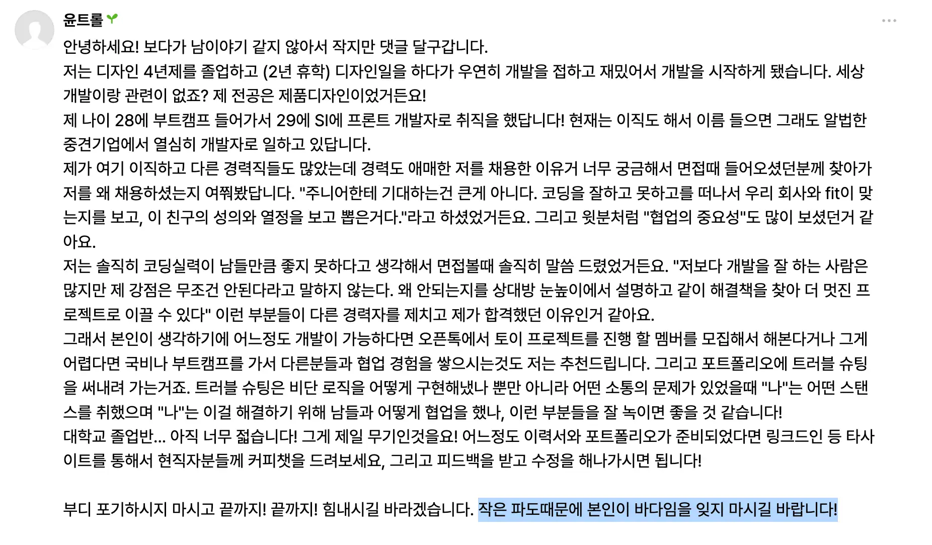 “작은 파도 때문에 본인이 바다임을 잊지 마시길 바랍니다!” 라는 글은 정말 울컥하더라구요 😢